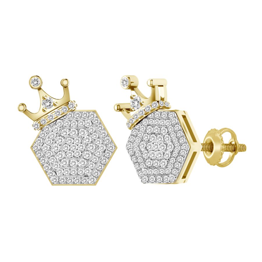 LADIES EARRINGS 1.00CT ROUND DIAMOND 14K YELLOW GOLD
