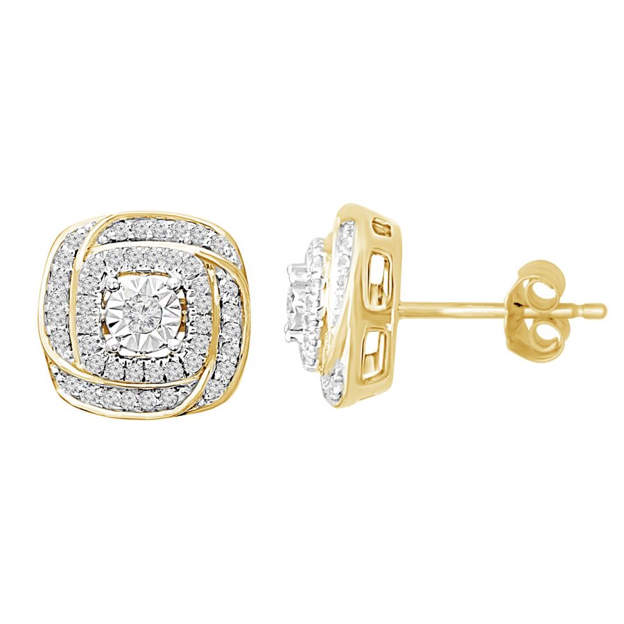 LADIES EARRINGS 0.25CT ROUND DIAMOND 10K YELLOW GOLD