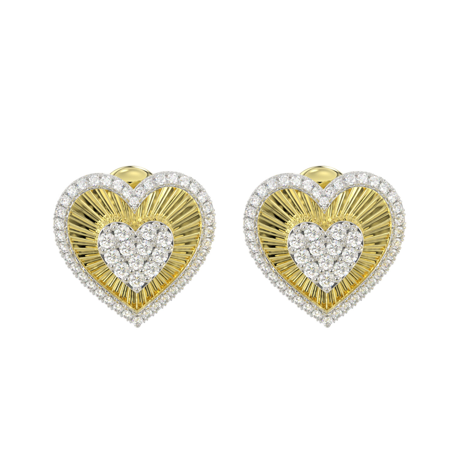 LADIES HOOP EARRINGS 1.50CT ROUND DIAMOND 14K YELLOW GOLD