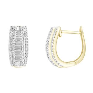 LADIES EARRINGS 0.30CT ROUND/BAGUETTE DIAMOND 10K YELLOW GOLD