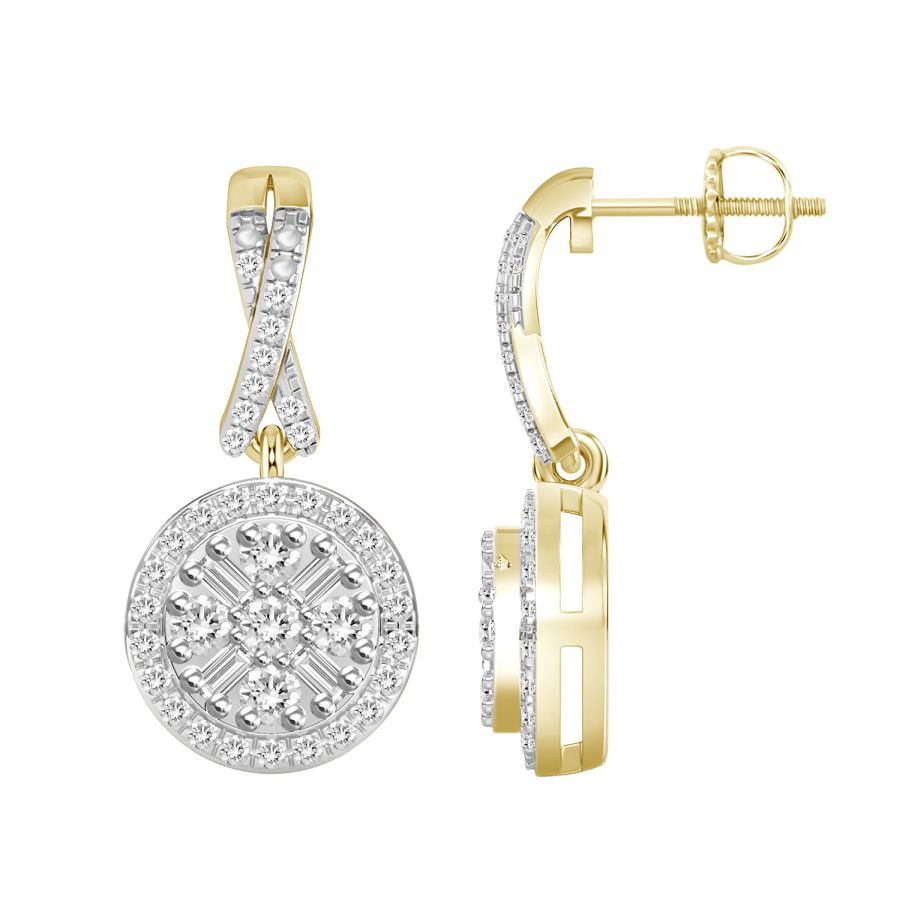 LADIES EARRINGS 0.30CT ROUND/BAGUETTE DIAMOND 10K YELLOW GOLD