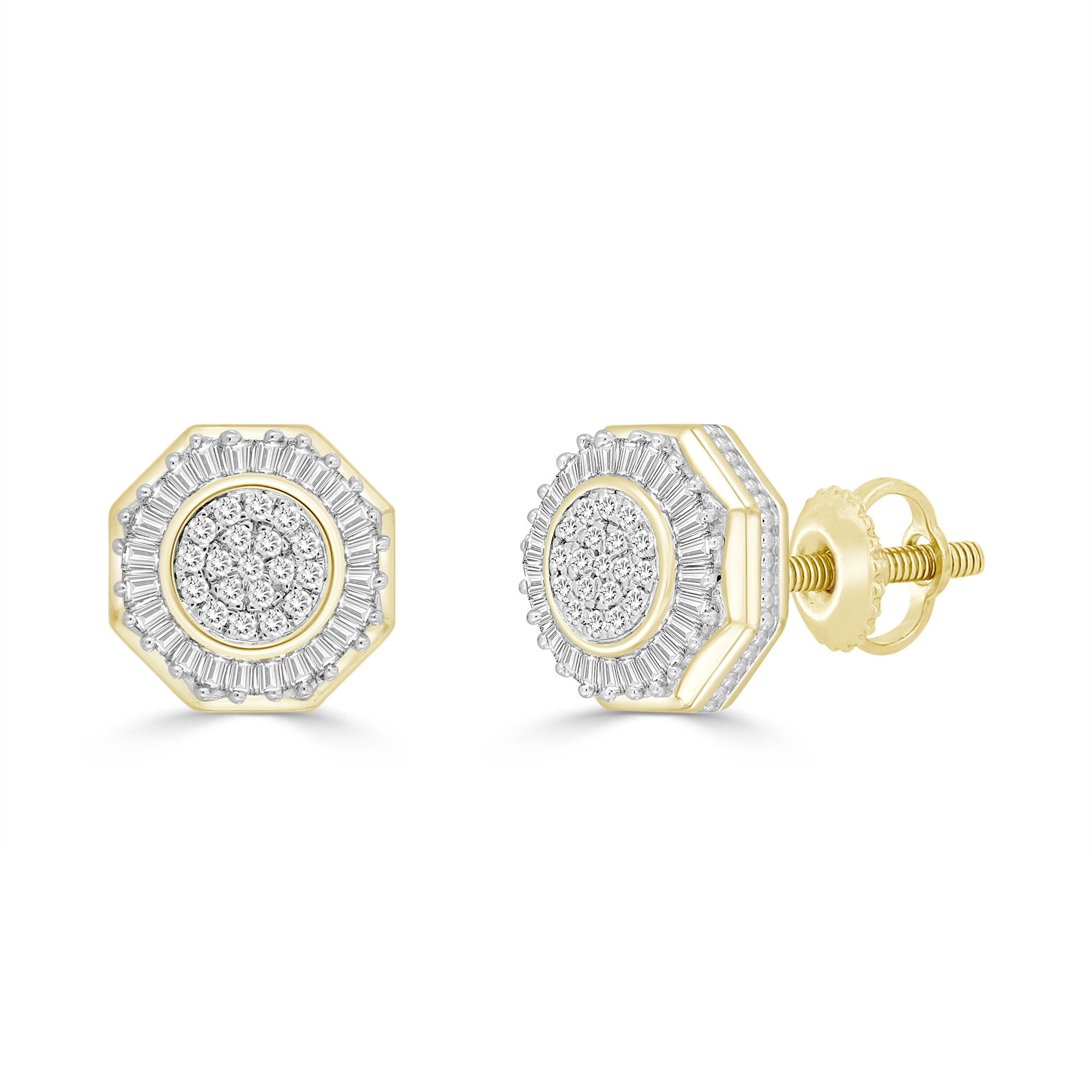LADIES EARRINGS 0.33CT ROUND/BAGUETTE DIAMOND 10K YELLOW GOLD