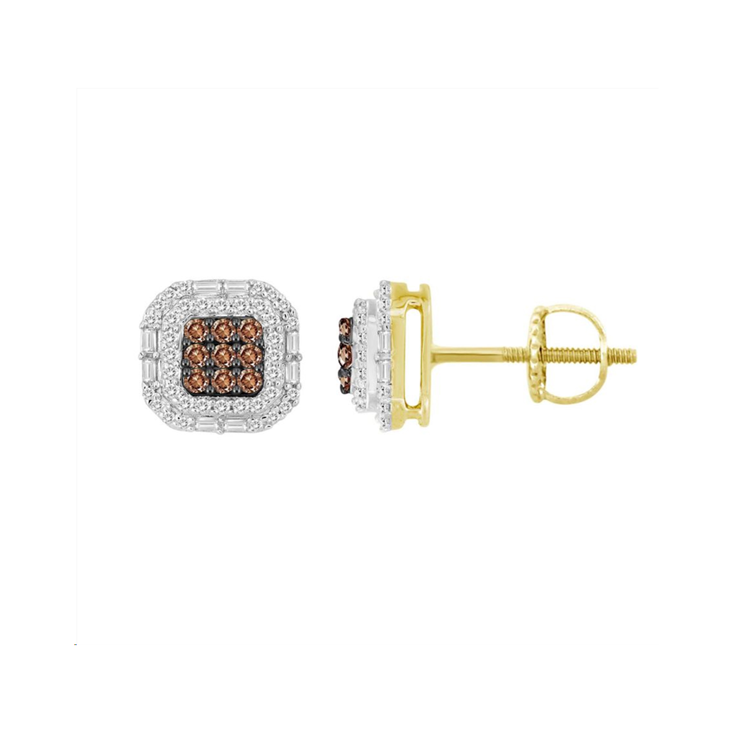 LADIES EARRINGS 0.50CT ROUND/BAGUETTE DIAMOND 10K YELLOW GOLD $759.99