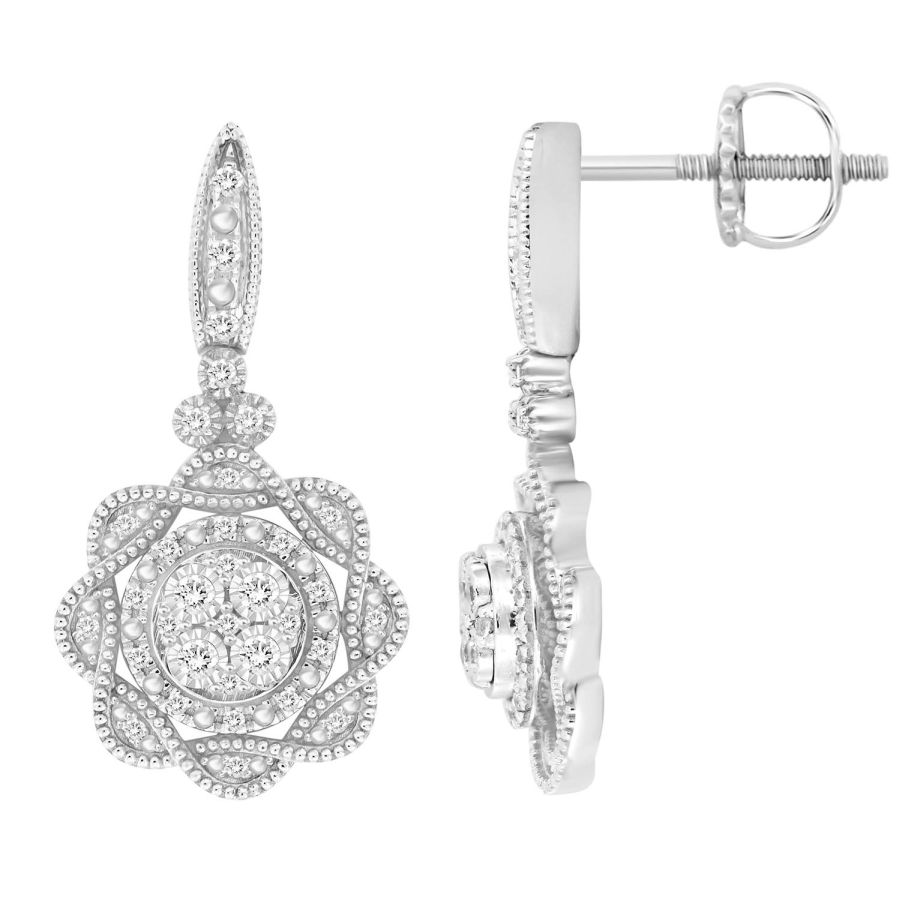 LADIES EARRINGS 0.33CT ROUND DIAMOND 10K WHITE GOLD