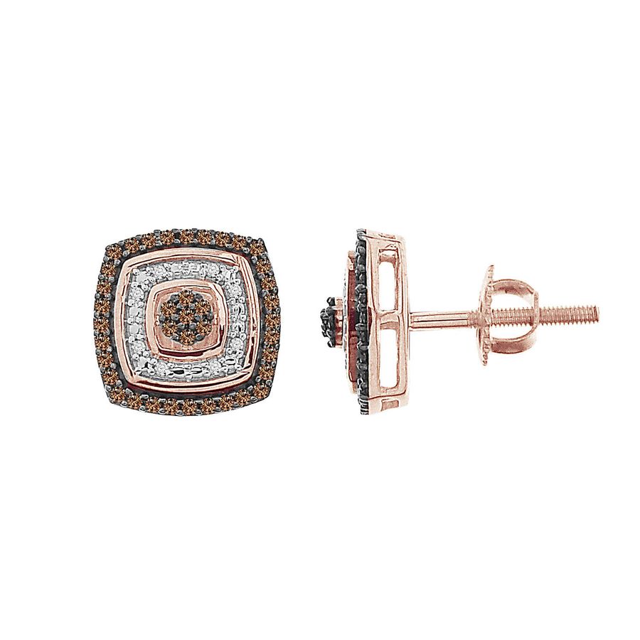 LADIES EARRINGS 0.35CT ROUND DARK BROWN DIAMOND 10K ROSE GOLD