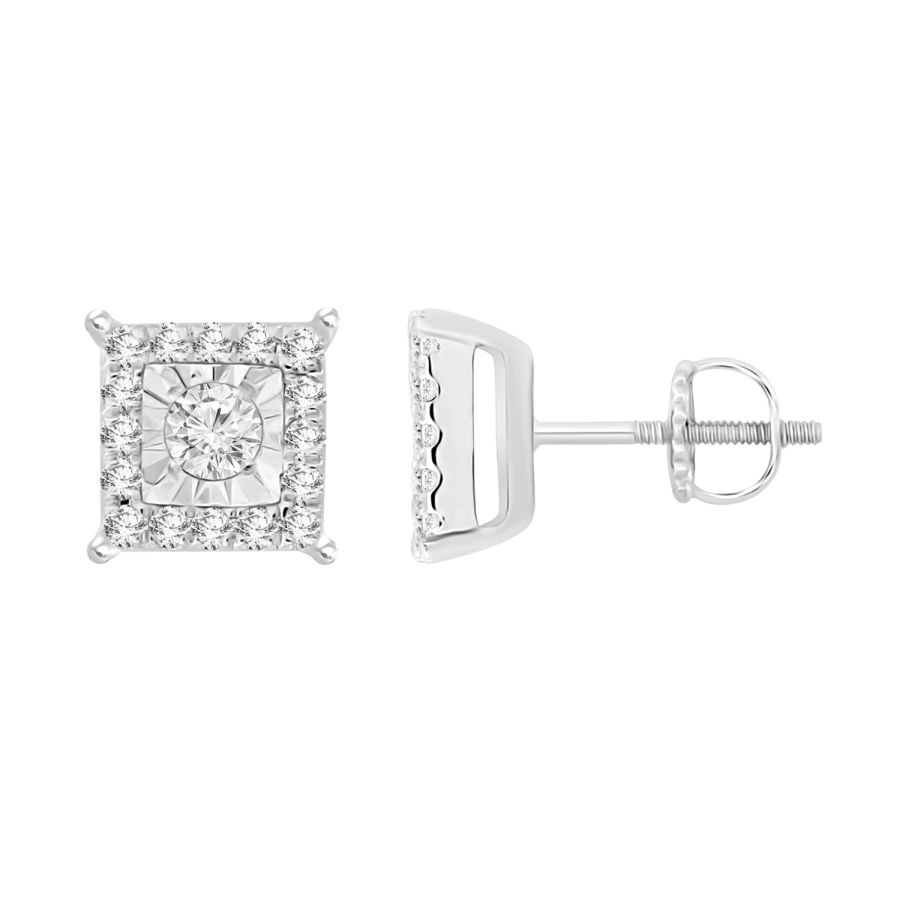 LADIES EARRINGS 0.35CT ROUND DIAMOND STERLING SILVER