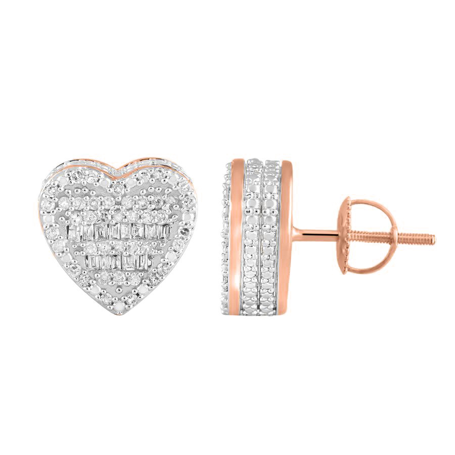 LADIES EARRINGS 0.50CT ROUND/BAGUETTE DIAMOND 10K ROSE GOLD