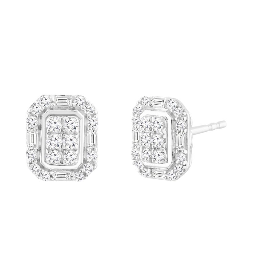 LADIES EARRINGS 0.50CT ROUND/BAGUETTE DIAMOND 10K WHITE GOLD