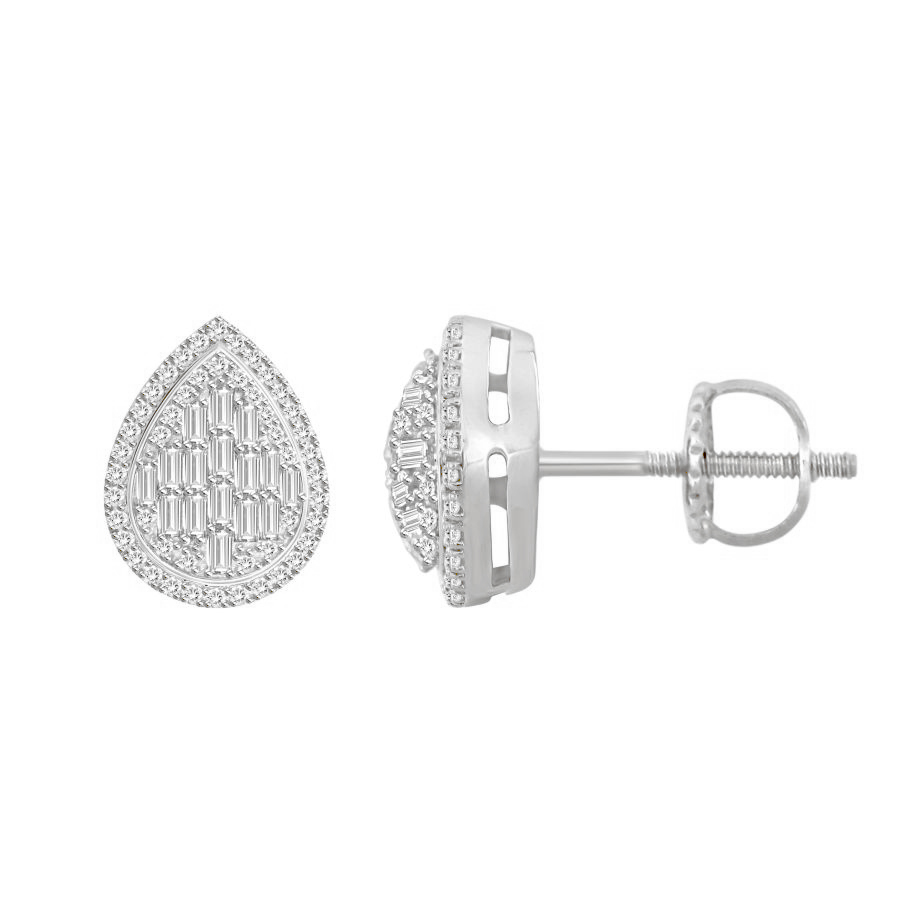LADIES EARRINGS 0.50CT ROUND/BAGUETTE DIAMOND 10K WHITE GOLD