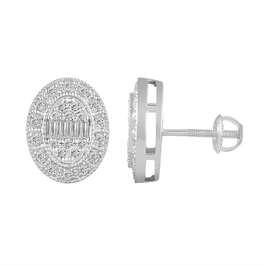LADIES EARRINGS 0.50CT ROUND/BAGUETTE DIAMOND 10K WHITE GOLD