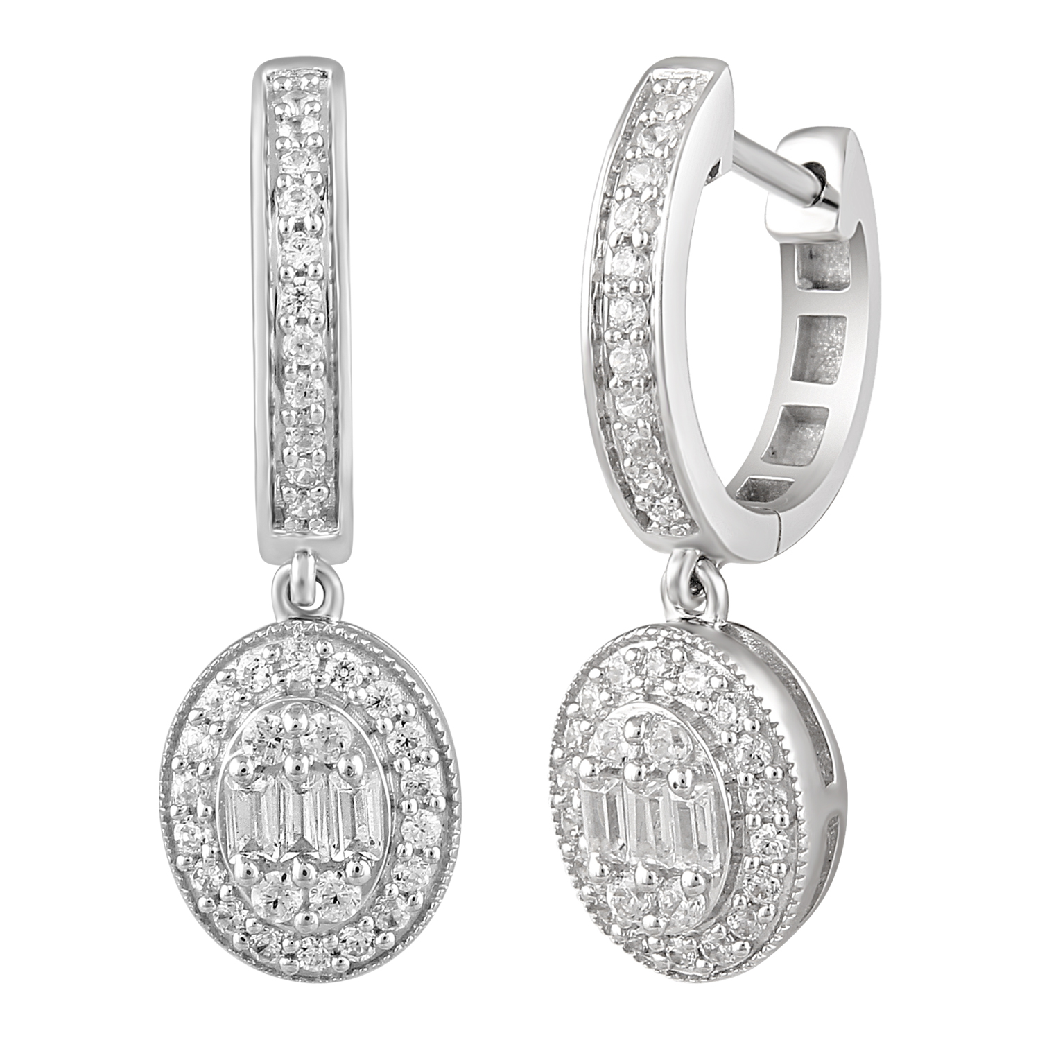 LADIES EARRINGS 0.50CT ROUND/BAGUETTE DIAMOND 10K WHITE GOLD