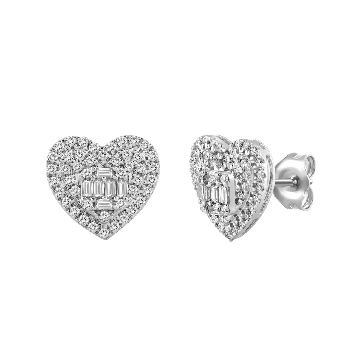 LADIES EARRINGS 0.50CT ROUND/BAGUETTE DIAMOND 14K WHITE GOLD