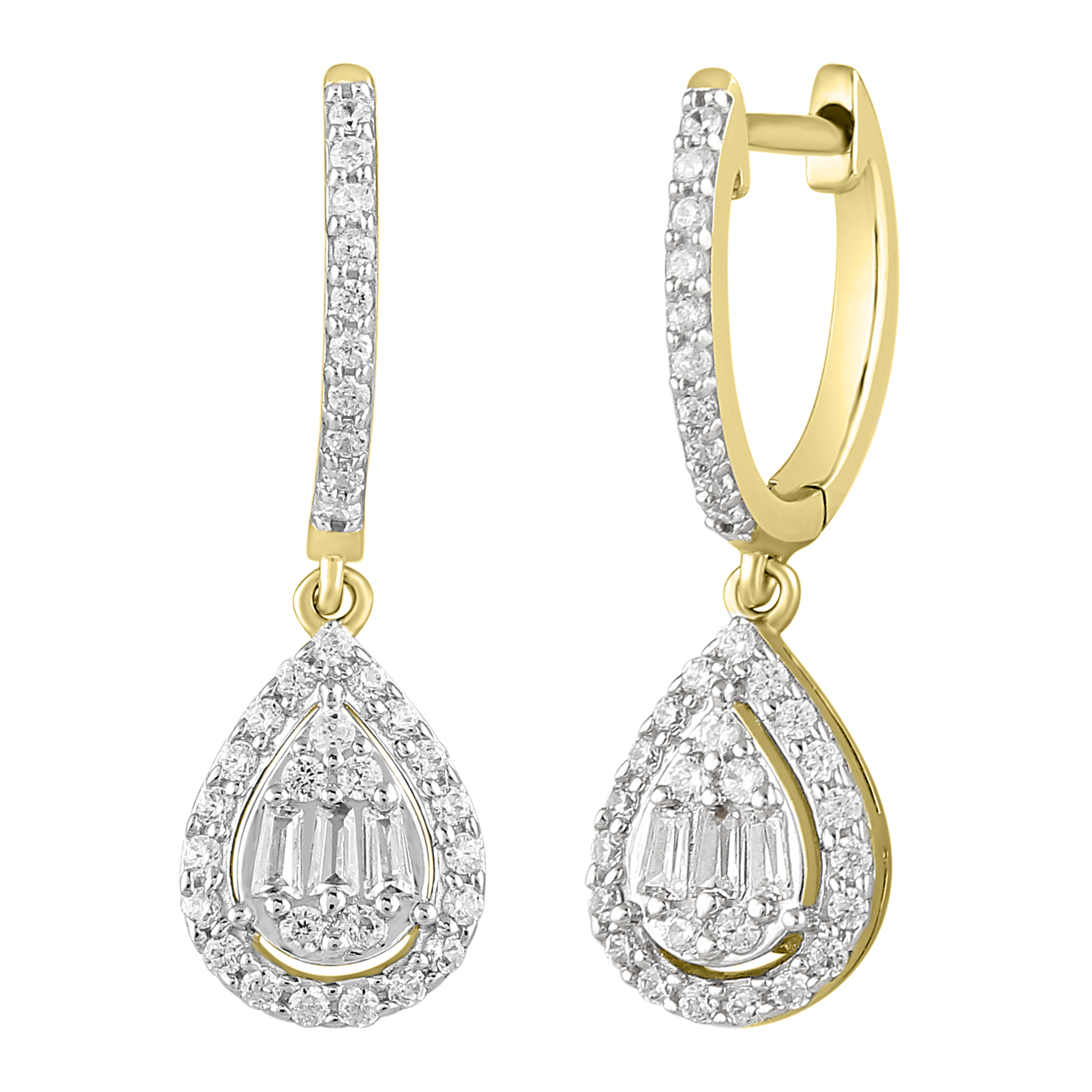 Home Earrings LADIES EARRINGS 0.50CT ROUND/BAGUETTE DIAMOND 14K YELLOW GOLD
