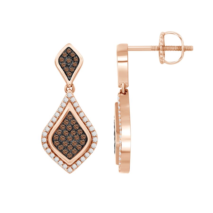 LADIES EARRINGS 0.50CT ROUND DARK BROWN DIAMOND 10K ROSE GOLD