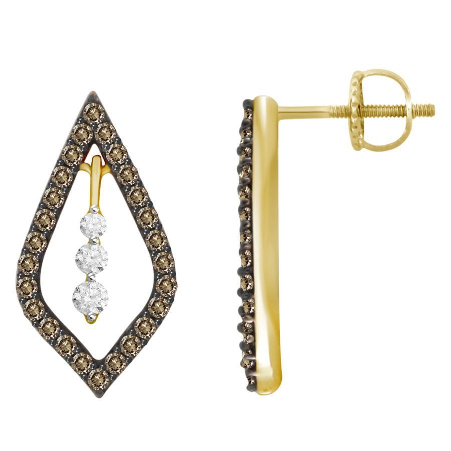 LADIES EARRINGS 0.50CT ROUND DARK BROWN DIAMOND 10K YELLOW GOLD