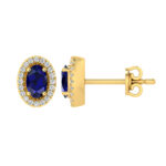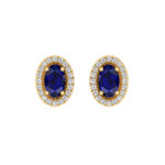 LADIES EARRINGS 0.50CT ROUND/OVAL BLUE SAPPHIRE DIAMOND 10K YELLOW GOLD (0.33CT OVAL BLUE SAPPHIRE DIAMOND)