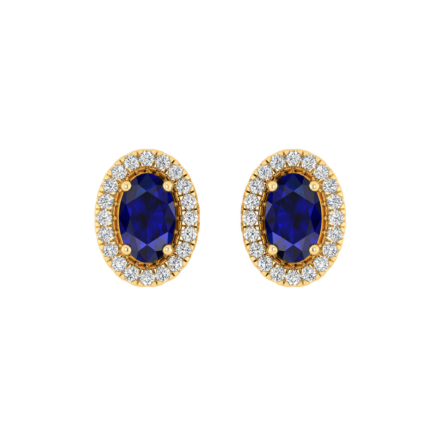 Home Earrings LADIES EARRINGS 0.50CT ROUND/OVAL BLUE SAPPHIRE DIAMOND 10K YELLOW GOLD (0.33CT OVAL BLUE SAPPHIRE DIAMOND)