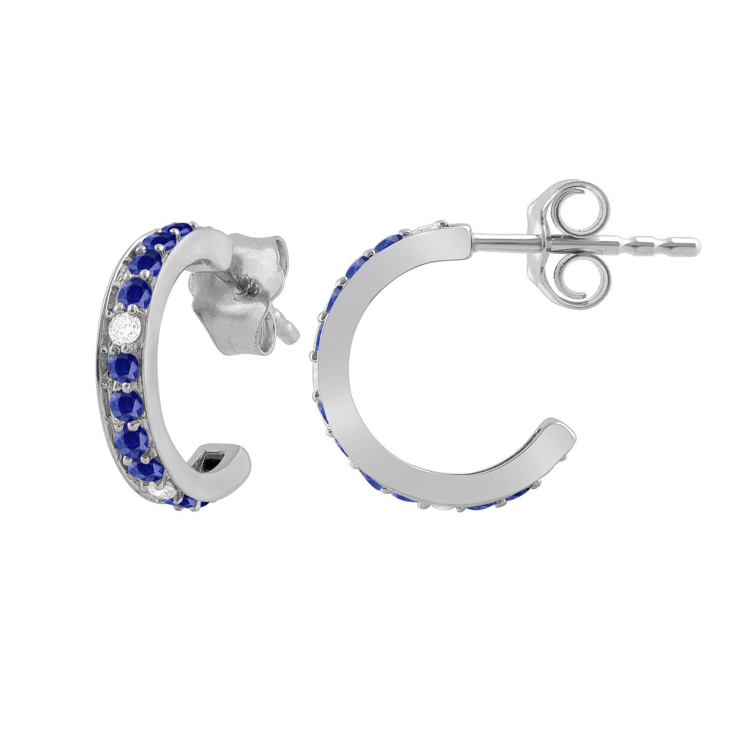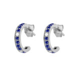 LADIES EARRINGS 0.55CT ROUND/BLUE SAPPHIRE ROUND DIAMOND 14K WHITE GOLD (BLUE SAPPHIRE DIAMOND 0.45CT)