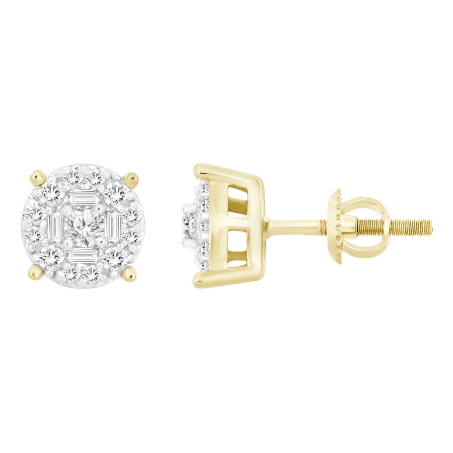 LADIES EARRINGS 0.60CT ROUND/BAGUETTE DIAMOND 10K YELLOW GOLD