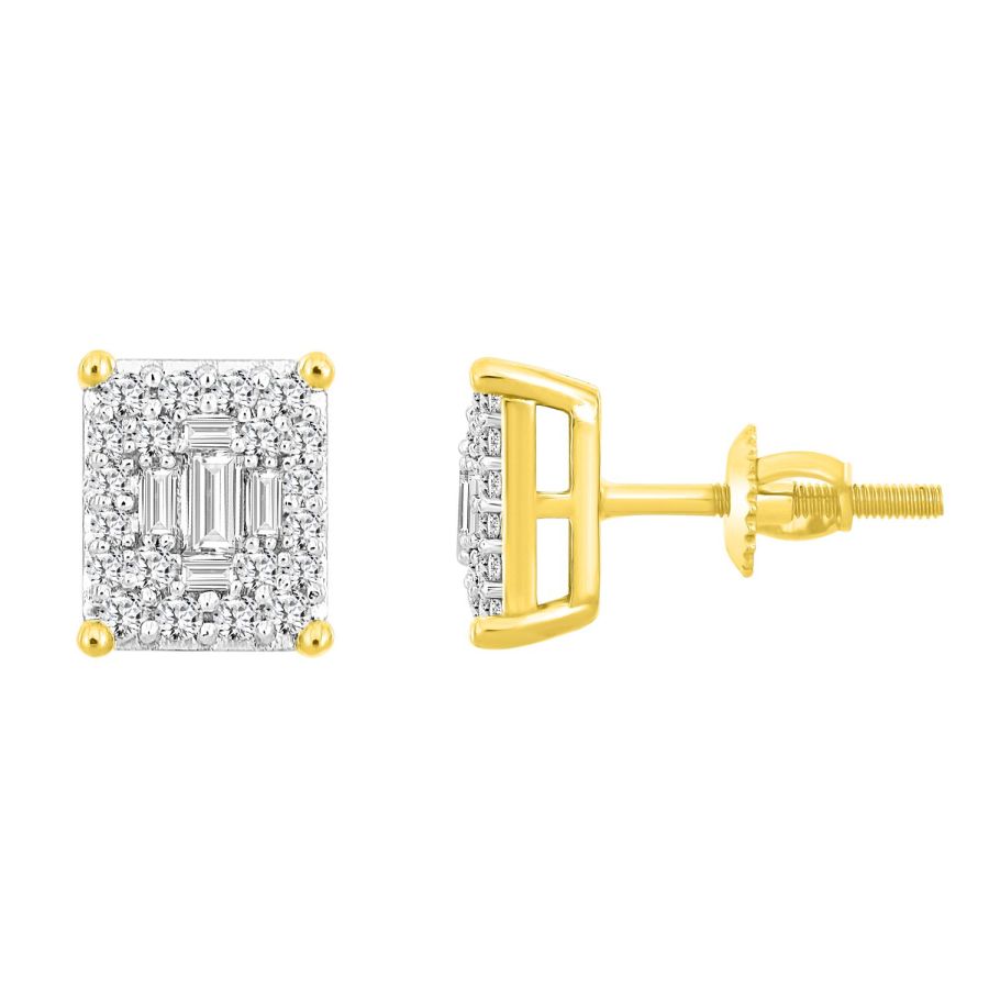 Home Earrings LADIES EARRINGS 0.60CT ROUND/BAGUETTE DIAMOND 14K YELLOW GOLD