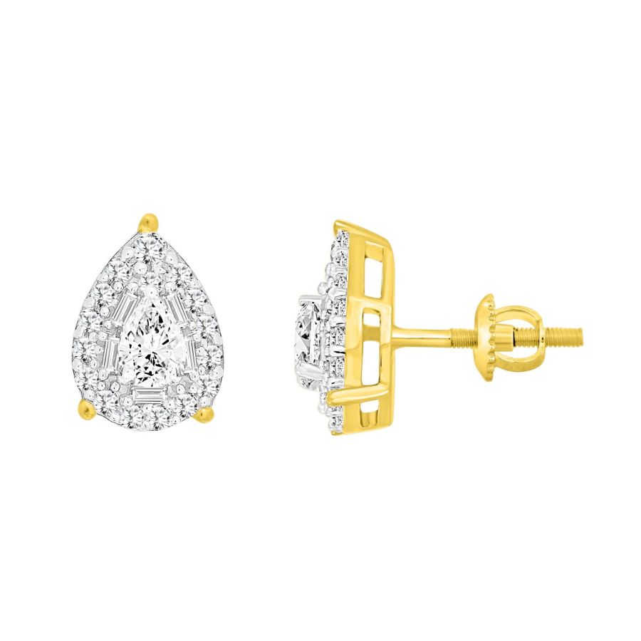 LADIES STUD EARRINGS 0.60CT ROUND/BAGUETTE/PEAR DIAMOND 10K YELLOW GOLD $1,229.99