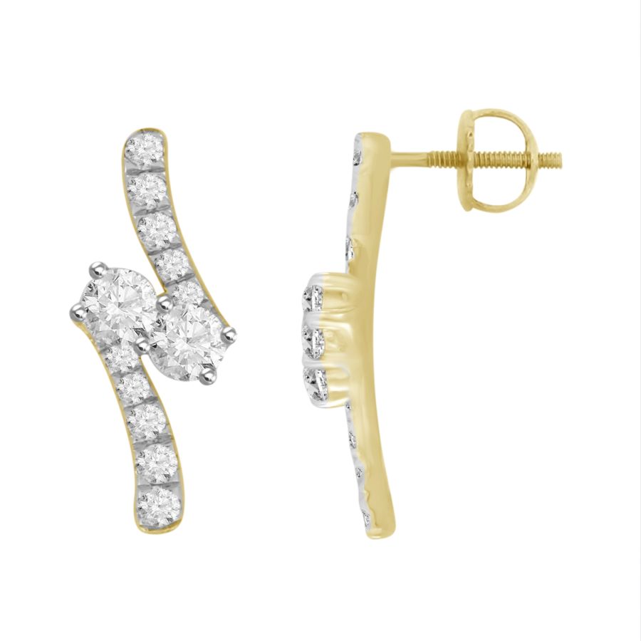 LADIES EARRINGS 1.00CT ROUND DIAMOND 14K YELLOW GOLD