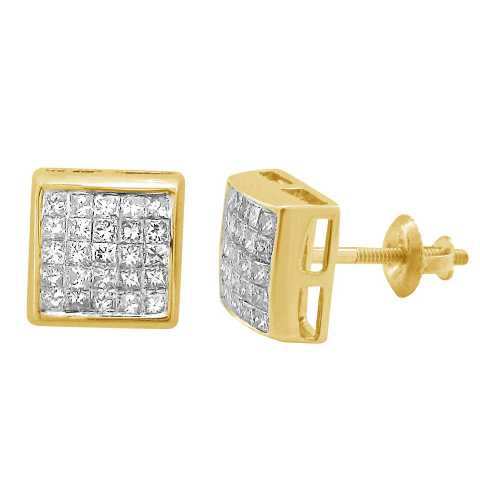 LADIES EARRINGS 0.70CT PRINCESS DIAMOND 14K YELLOW GOLD