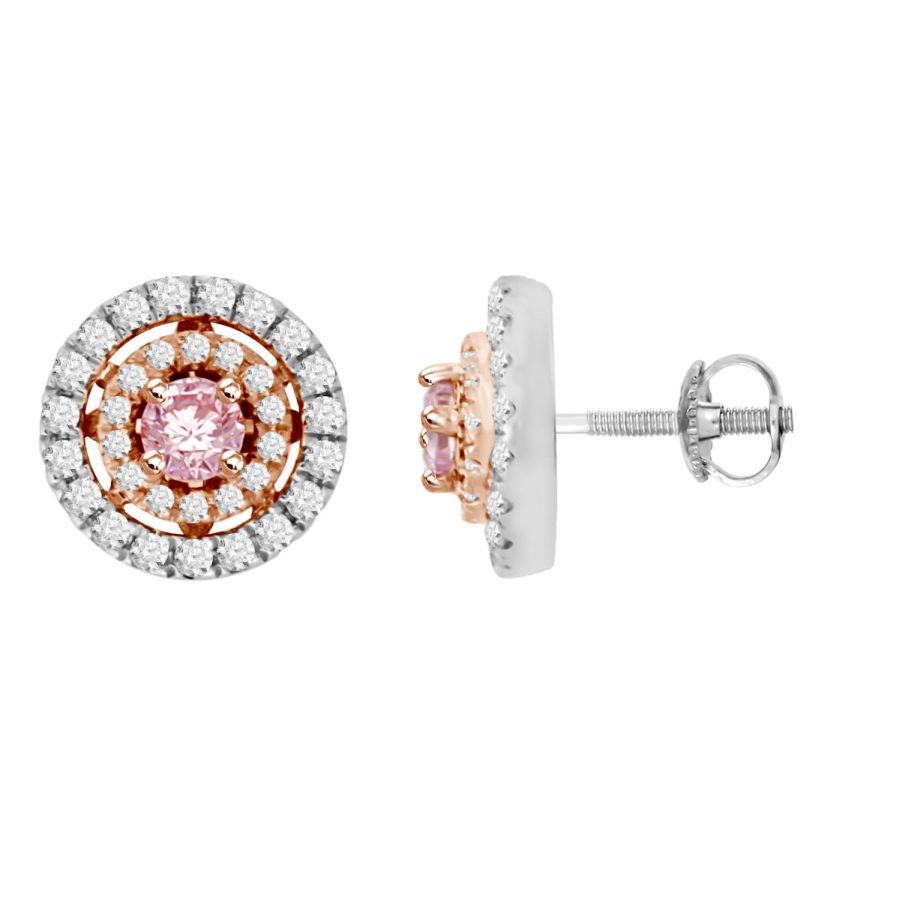 LADIES EARRINGS 0.70CT ROUND PINK DIAMOND 14K WHITE/ROSE GOLD