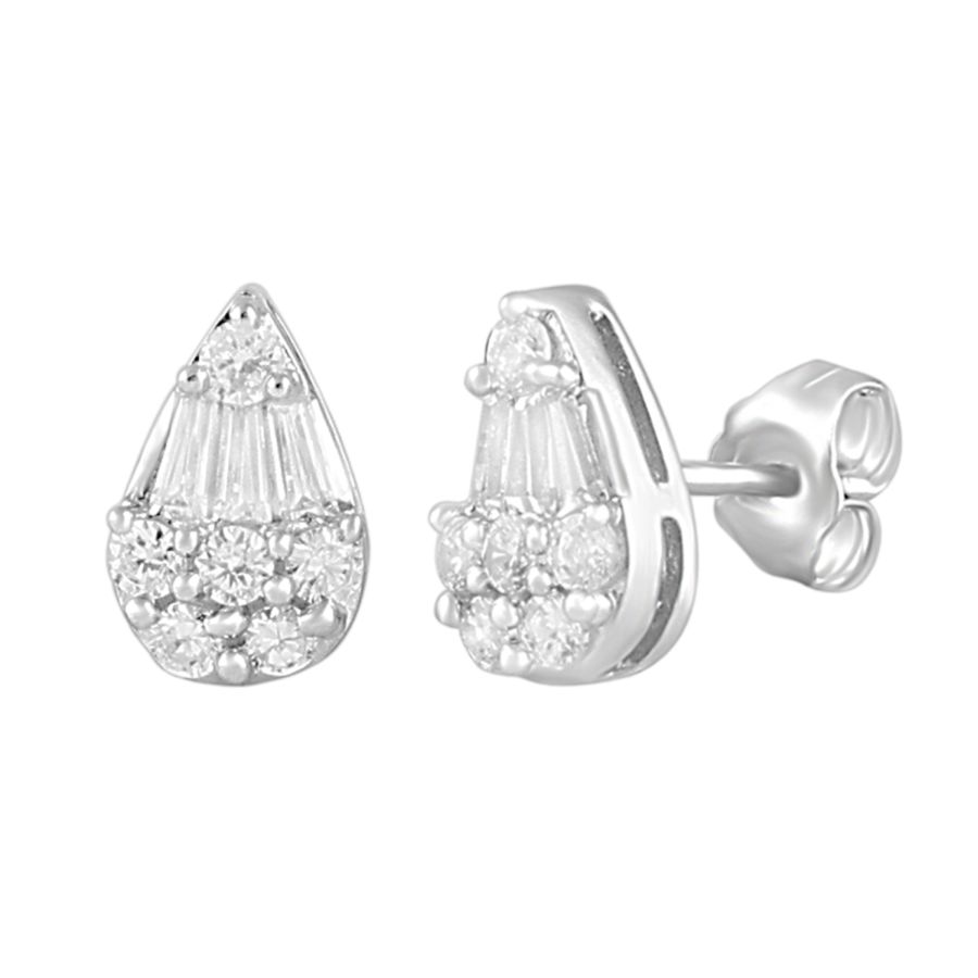 LADIES EARRINGS 0.50CT ROUND/BAGUETTE DIAMOND 14K WHITE GOLD