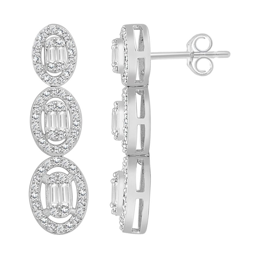 LADIES EARRINGS 0.75CT ROUND/BAGUETTE DIAMOND 10K WHITE GOLD