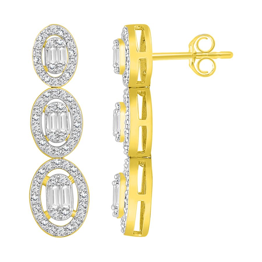 LADIES EARRINGS 0.75CT ROUND/BAGUETTE DIAMOND 10K YELLOW GOLD