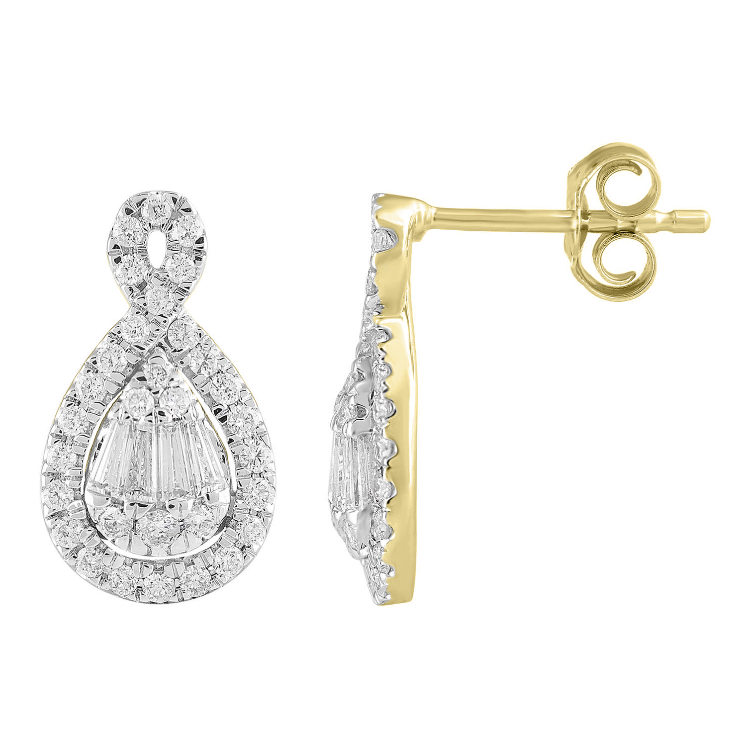 Home Earrings LADIES EARRINGS 0.75CT ROUND/BAGUETTE DIAMOND 10K YELLOW GOLD