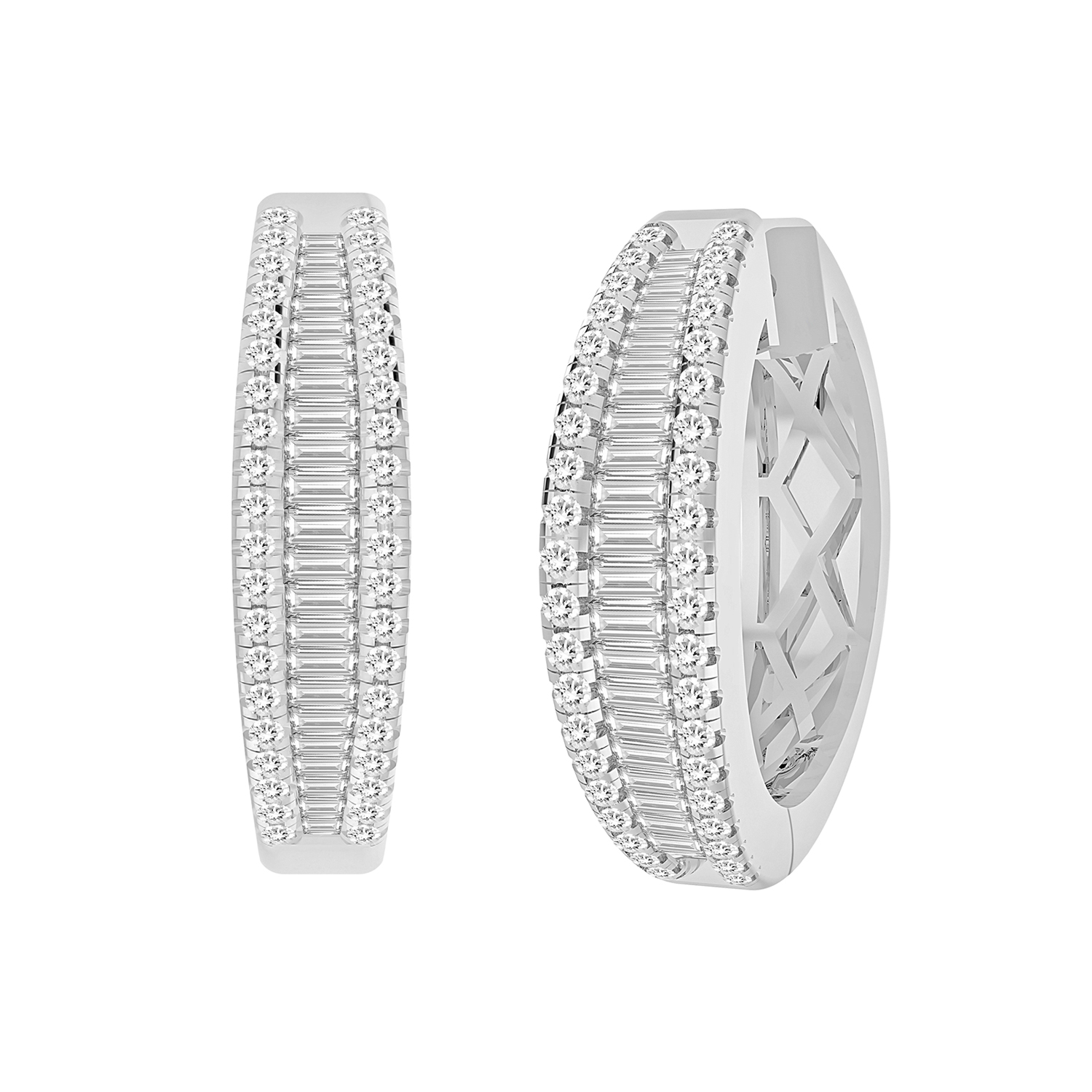 LADIES EARRINGS 0.75CT ROUND/BAGUETTE DIAMOND 14K WHITE GOLD