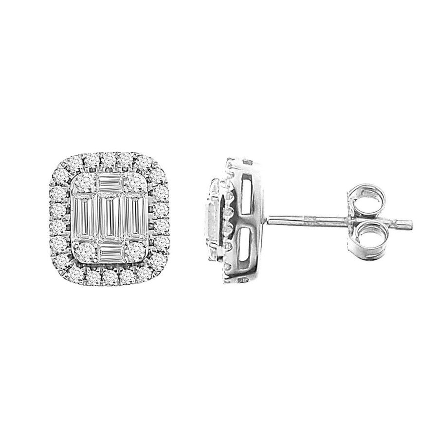 LADIES EARRINGS 0.75CT ROUND/BAGUETTE DIAMOND 14K WHITE GOLD (SI QUALITY)