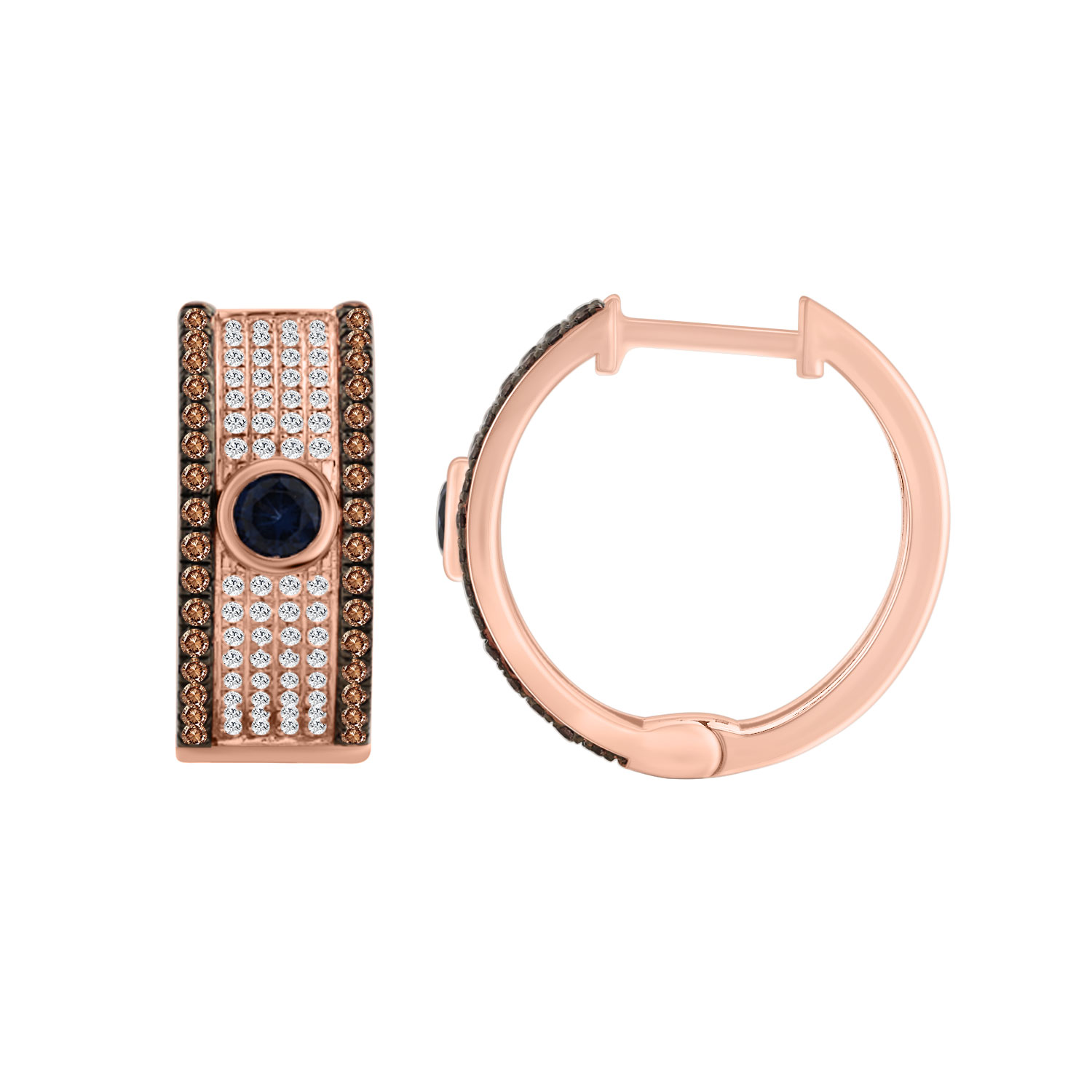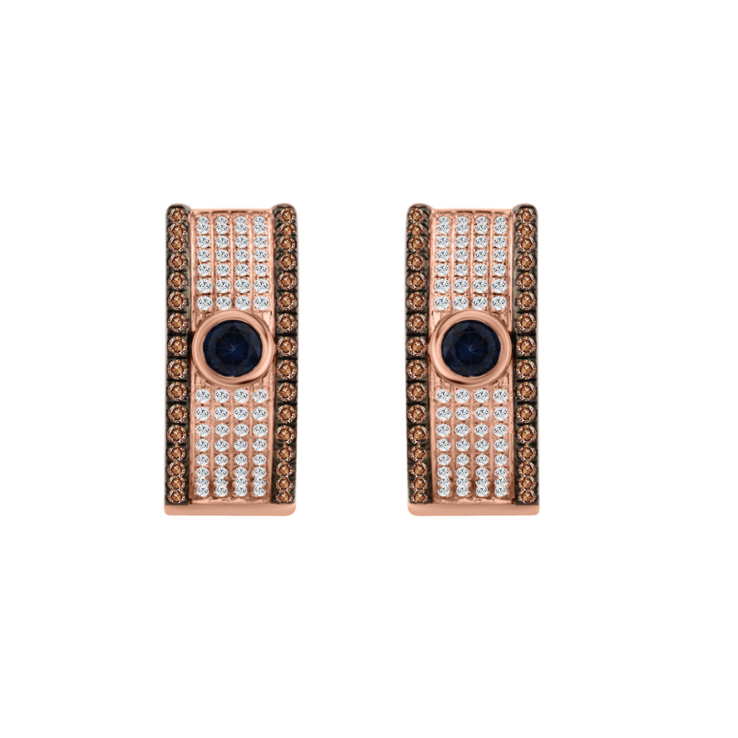 LADIES EARRINGS 0.75CT ROUND/DARK BROWN/BLUE DIAMOND 14K ROSE GOLD