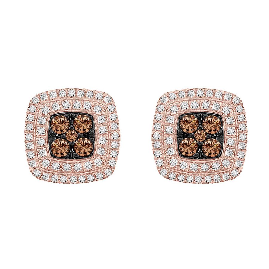 LADIES EARRINGS 0.75CT ROUND DARK BROWN DIAMOND 10K ROSE GOLD