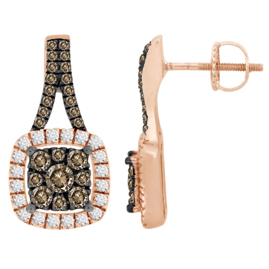 LADIES EARRINGS 0.75CT ROUND DARK BROWN DIAMOND 10K ROSE GOLD