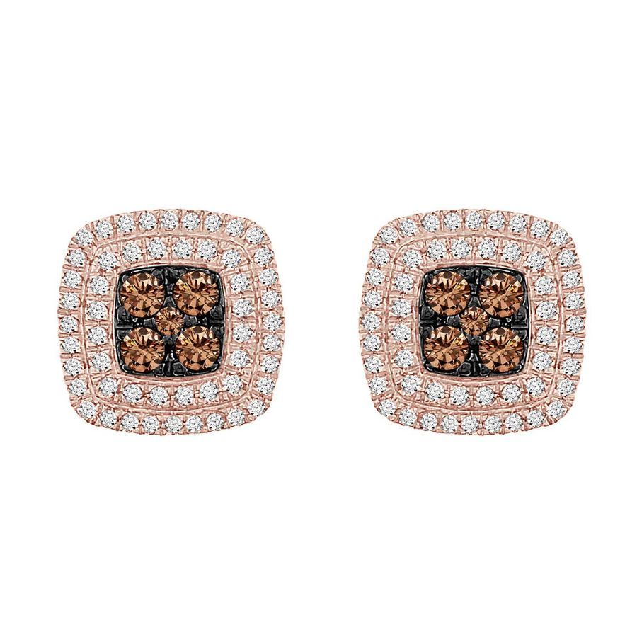LADIES EARRINGS 0.75CT ROUND DARK BROWN DIAMOND 14K ROSE GOLD