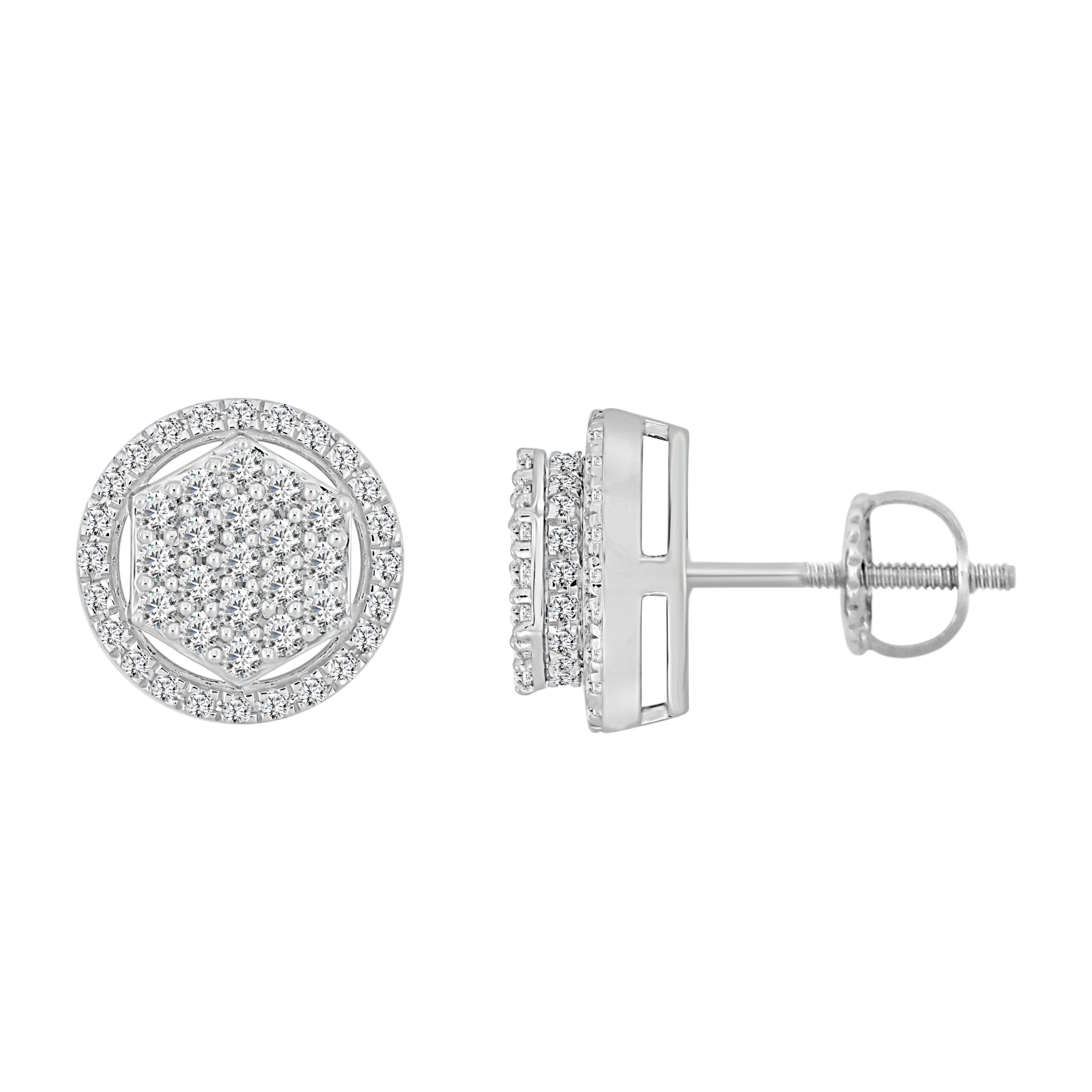 LADIES EARRINGS 0.75CT ROUND DIAMOND 10K WHITE GOLD