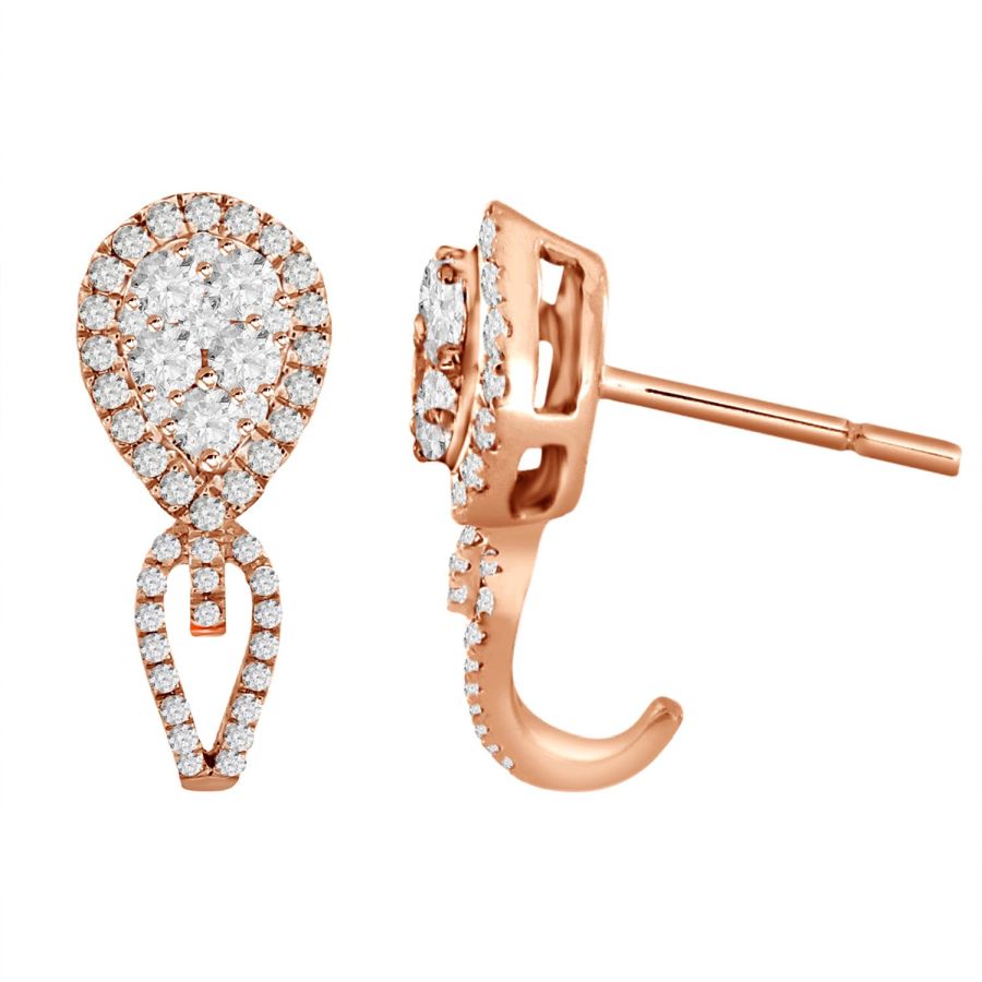 LADIES EARRINGS 0.75CT ROUND DIAMOND 14K ROSE GOLD