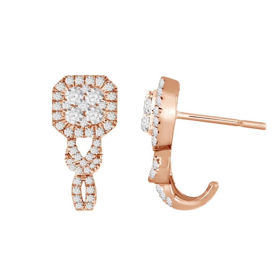 LADIES EARRINGS 0.75CT ROUND DIAMOND 14K ROSE GOLD