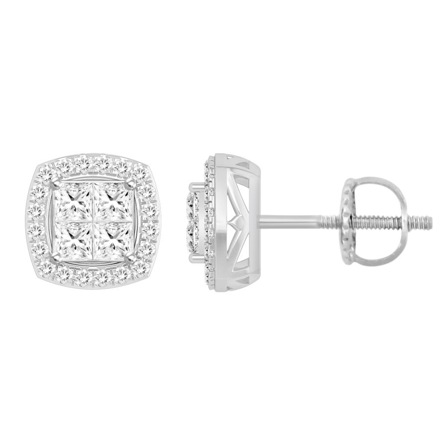 LADIES EARRINGS 0.75CT ROUND/PRINCESS DIAMOND 10K WHITE GOLD