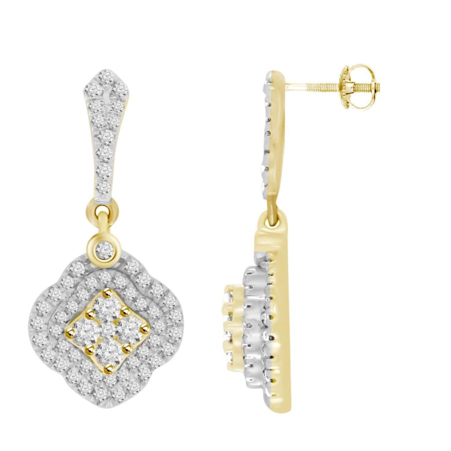 LADIES EARRINGS 0.85CT ROUND DIAMOND 14K YELLOW GOLD