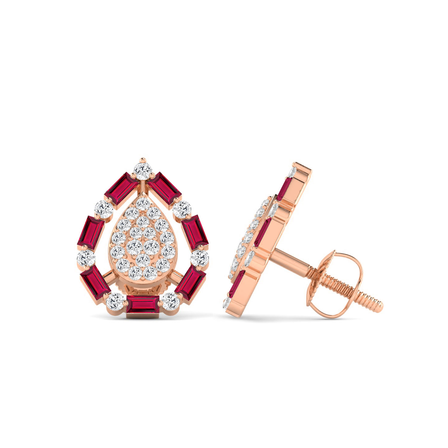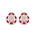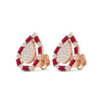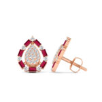 LADIES EARRINGS 0.88CT ROUND/RUBY BAGUETTE DIAMOND 14K ROSE GOLD (RUBY BAGUETTE DIAMOND 0.62CT)