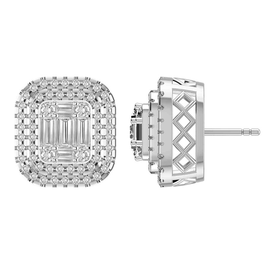 LADIES EARRINGS 1.00CT ROUND/BAGUETTE DIAMOND 10K WHITE GOLD