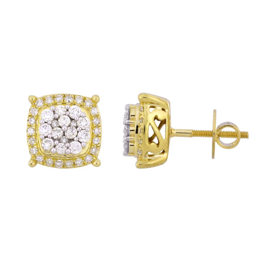 LADIES EARRINGS 1.00CT ROUND DIAMOND 10K YELLOW GOLD