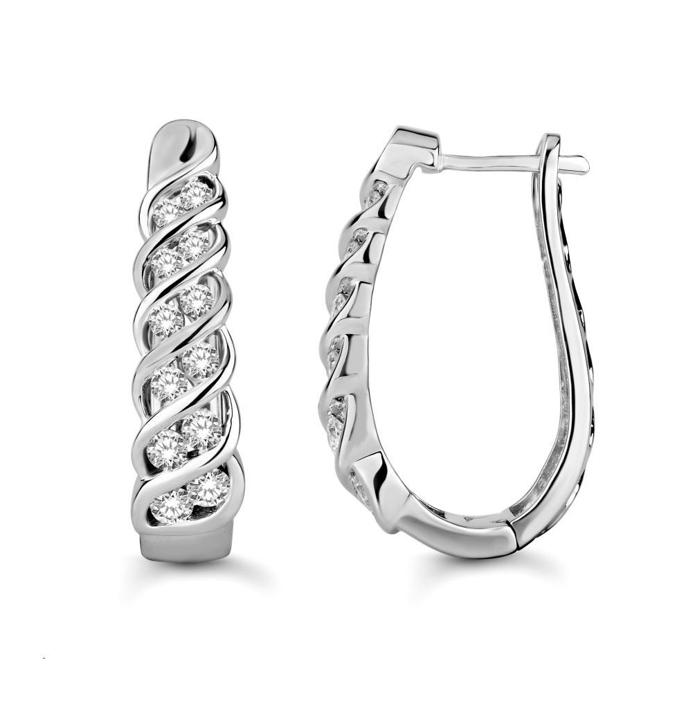 LADIES EARRINGS 1.00CT ROUND DIAMOND 14K WHITE GOLD