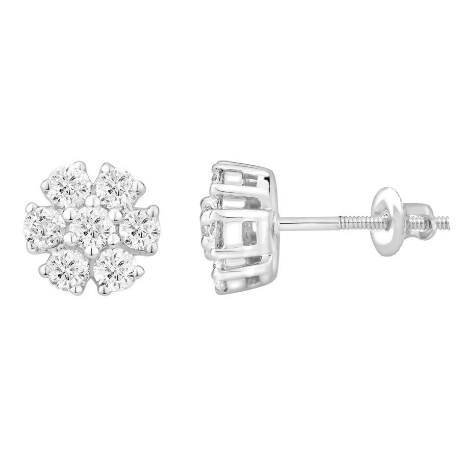 LADIES EARRINGS 1.00CT ROUND DIAMOND 14K WHITE GOLD