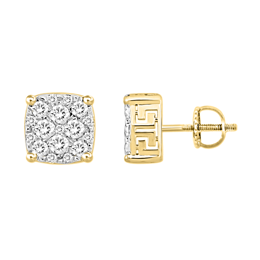 LADIES EARRINGS 1.00CT ROUND DIAMOND 14K YELLOW GOLD