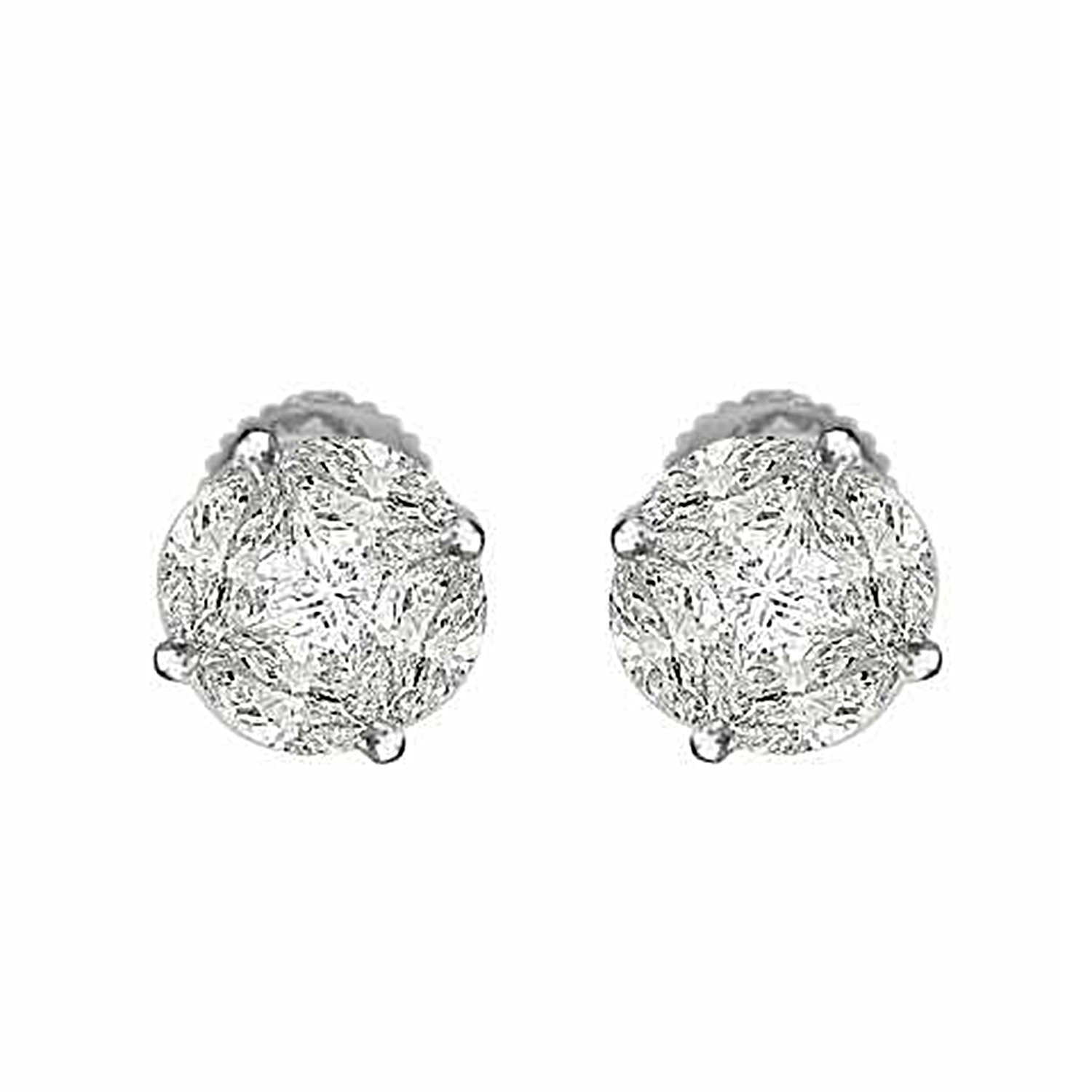 LADIES EARRINGS 1.00CT ROUND/MARQUISE DIAMOND 14K WHITE GOLD